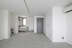 壁は白のペンキ塗装。床はモルタル床で、爽やかな開放感のある空間です。